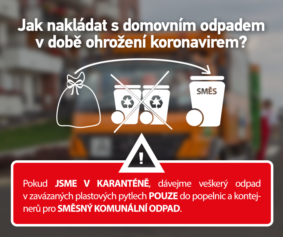 - Povrch vnějšího pytle ošetřete dezinfekčním prostředkem a zavázaný pytel až pak dejte do černého kontejneru na směsný komunální odpad.