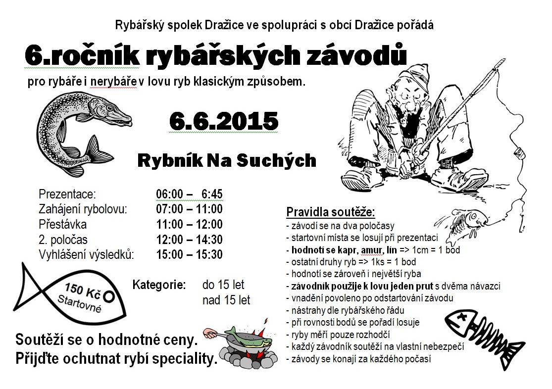 V sobotu 7. června upořádal rybářský spolek při obci Dražice za podpory Rybářství Seidl Tábor, obce Dražice a Restaurace Na hřišti již 5. ročník rybářských závodů v lovu kaprů.