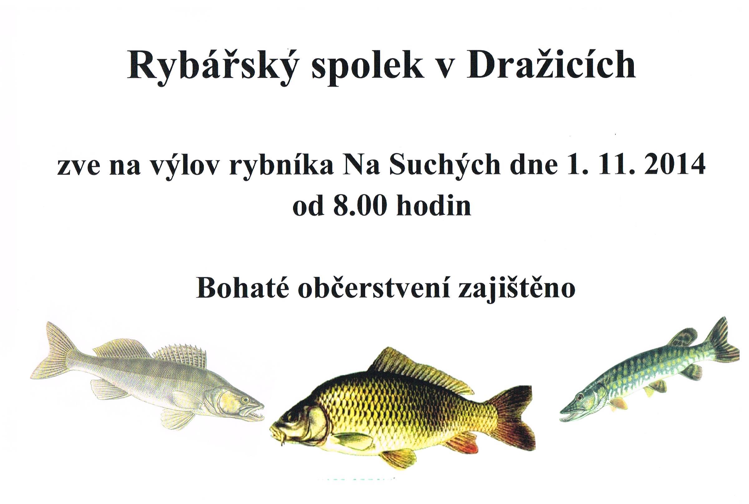 V sobotu 1. 11. 2014, za nádherného počasí, byl v osm hodin zahájen výlov našeho rybníka „Na Suchých“. Napětí, co po třech letech a loňské povodni vydá, bylo značné. Kombinace obou těchto skutečností zřejmě způsobila obrovský zájem mezi občany nejen z Dražic.