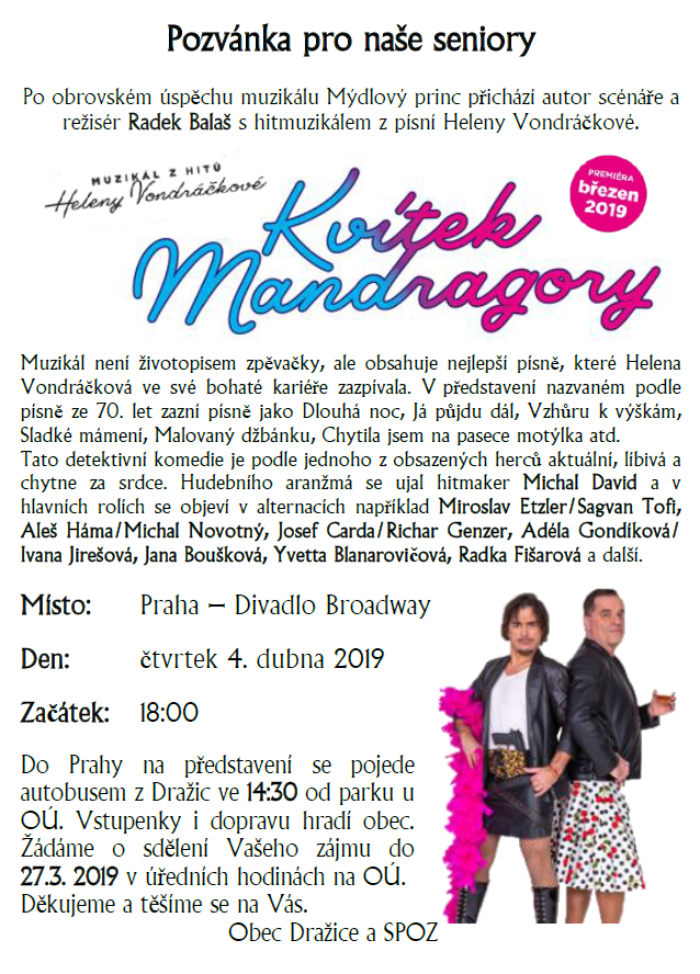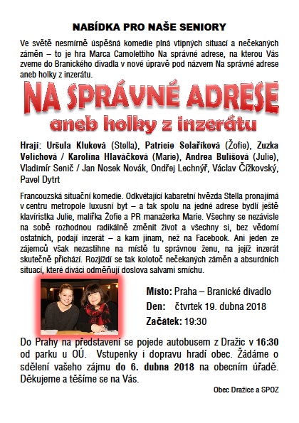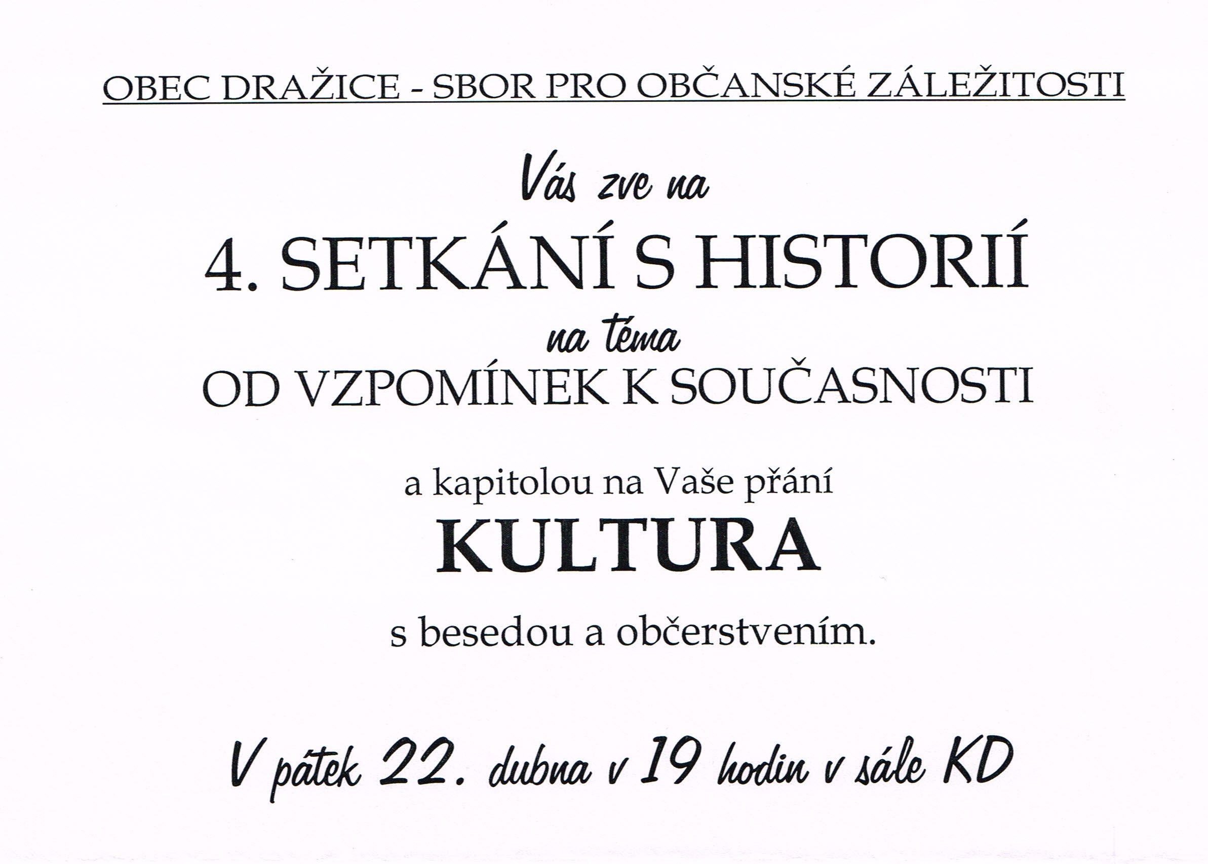 Nejnovější tradicí je pořádání zájezdů za kulturou pro dříve narozené, kdy obec zajistí a uhradí vstupenky a dopravu na divadelní představení.
