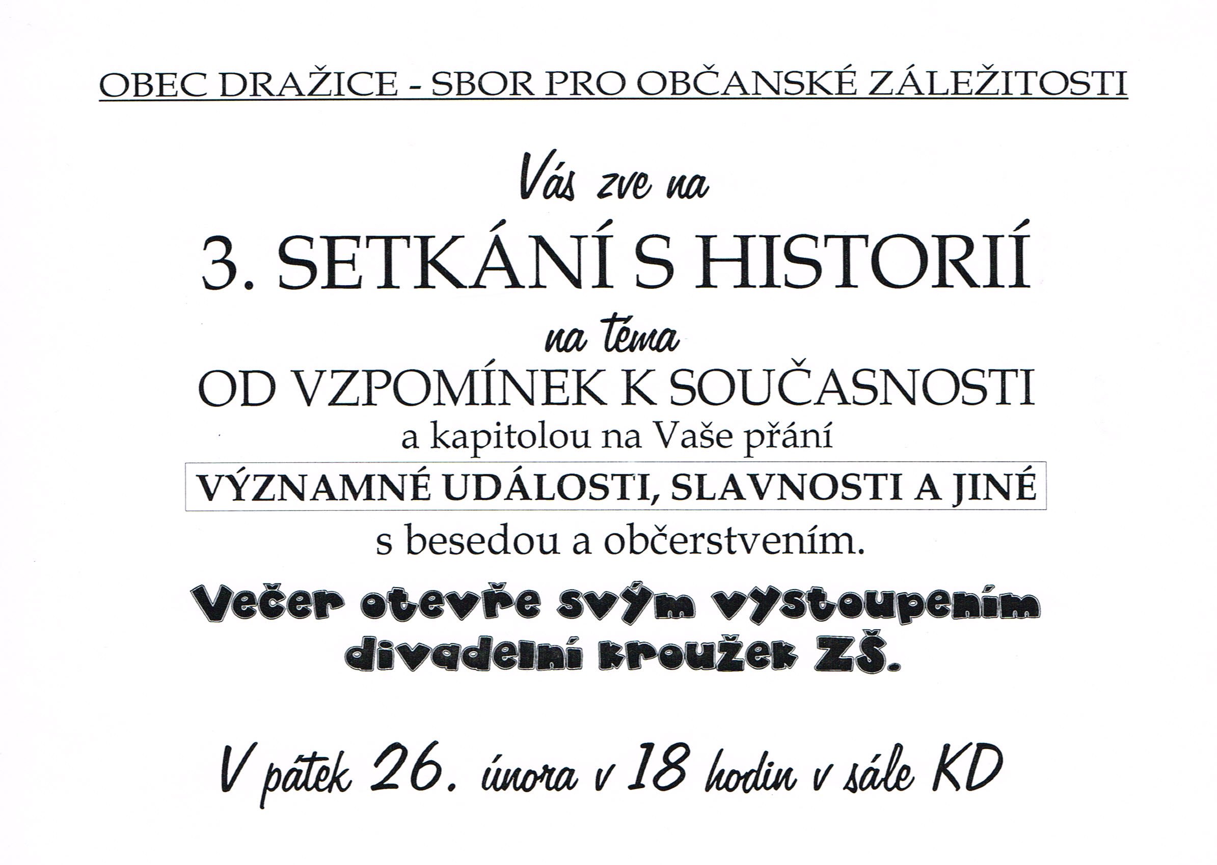 Významnou oslavou je také setkání důchodců. Probíhá každým rokem v místním kulturním domě. Na seniory většinou čeká vystoupení našich dětí, hudba, tanec a dobré občerstvení. Samozřejmostí se stala přítomnost starosty obce pana Lubomíra Smažíka, který rád mezi nimi posedí a popovídá.