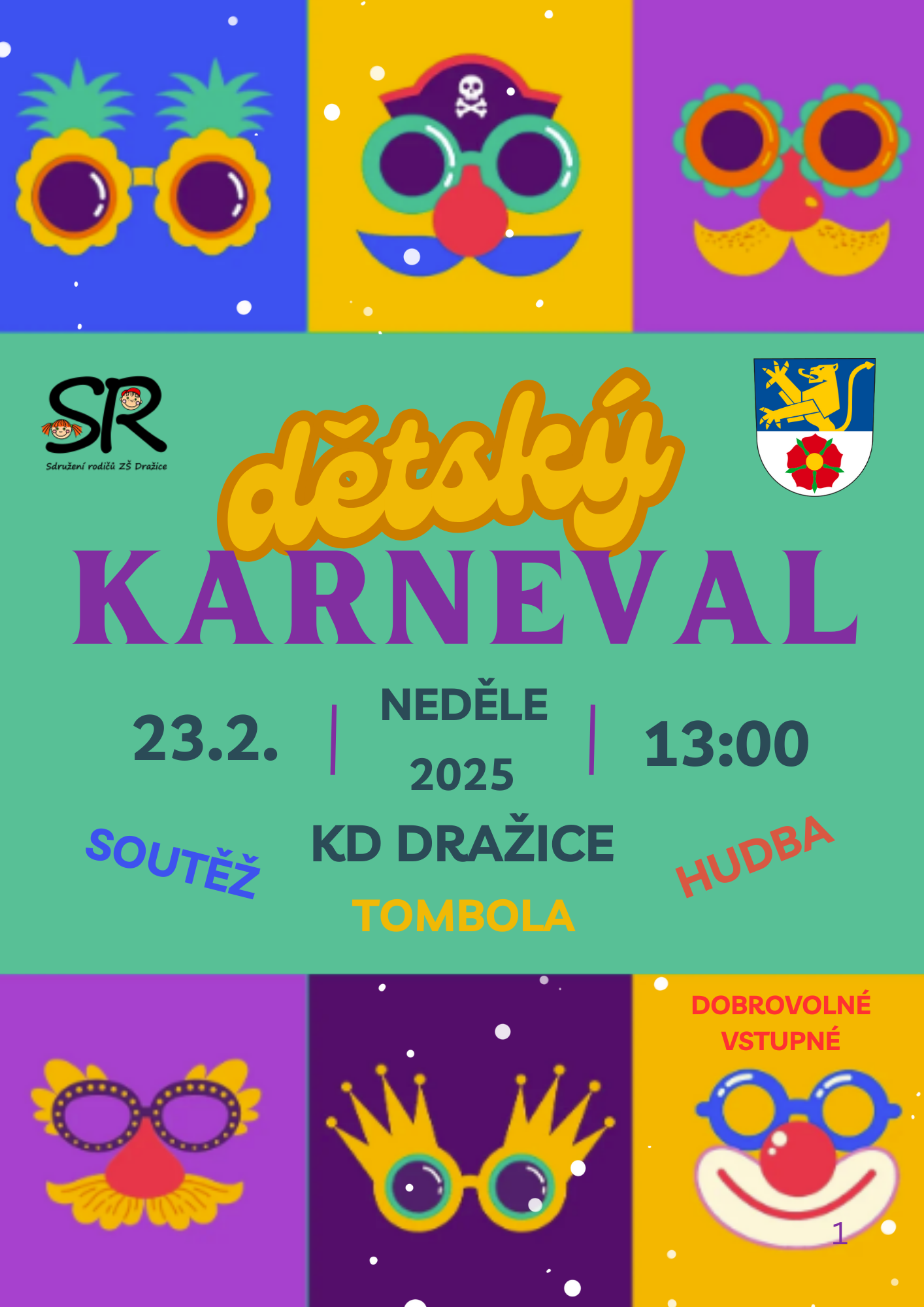 Dražice sobota 22.2.2025 od 10:00. Sraz masek je v 9:45 u hřiště. Bližší informace naleznete v příloze.