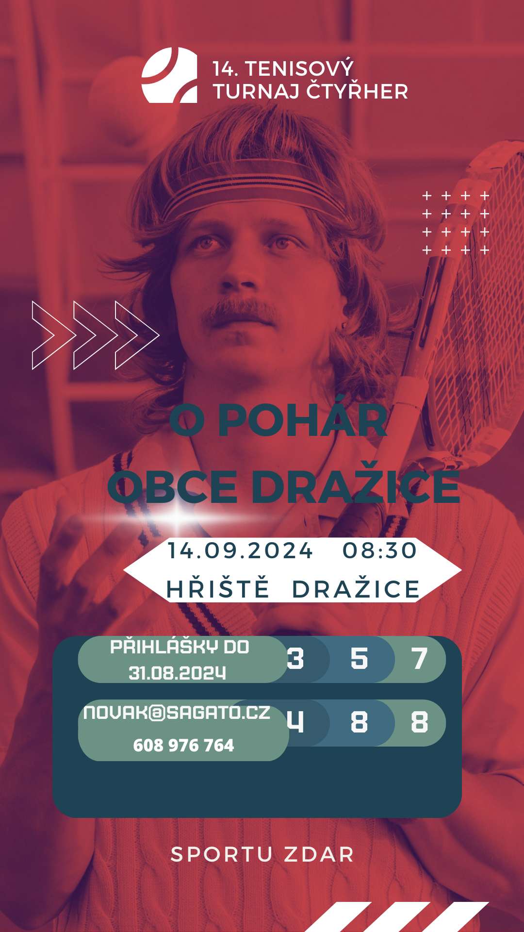 Sportovní areál TJ Dražice - 5.9.2024 od 16:30. Bližší informace naleznete v příloze.