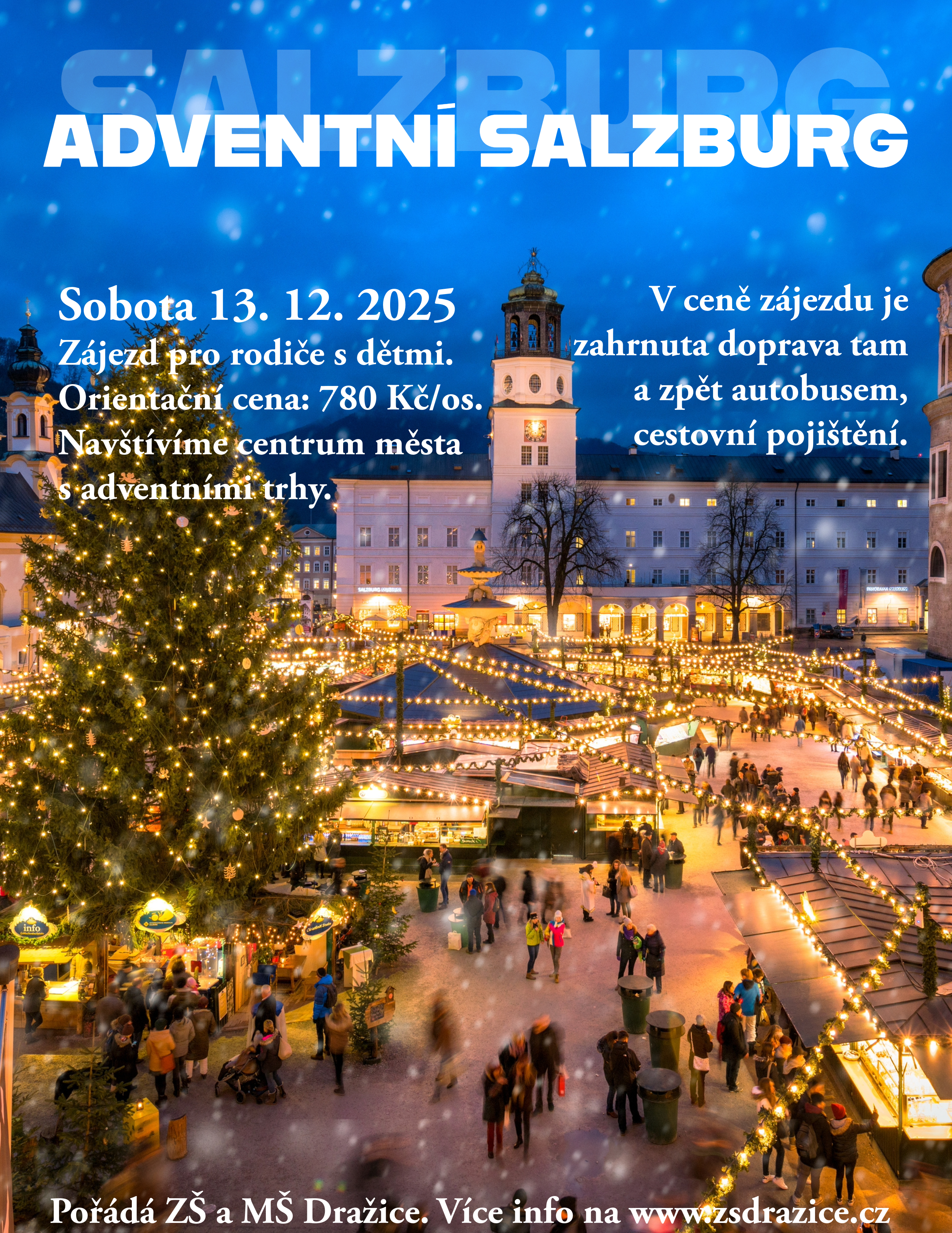 Škola nabízí zájezd do adventního Salzburgu 13.12.2025. Plakát v příloze.