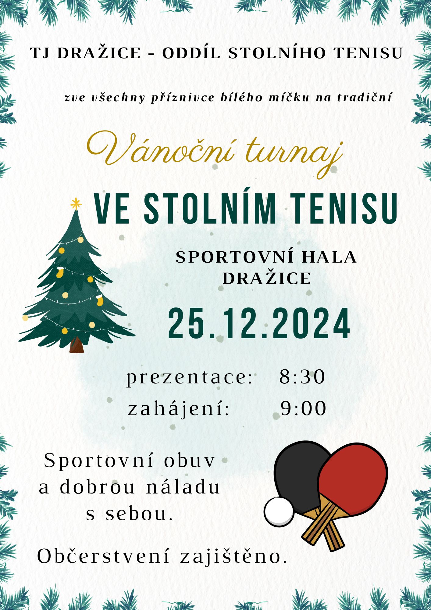Sportovní hala Dražice 25.12.2025. Zahájení v 9:00. Bližší informace naleznete v příloze.