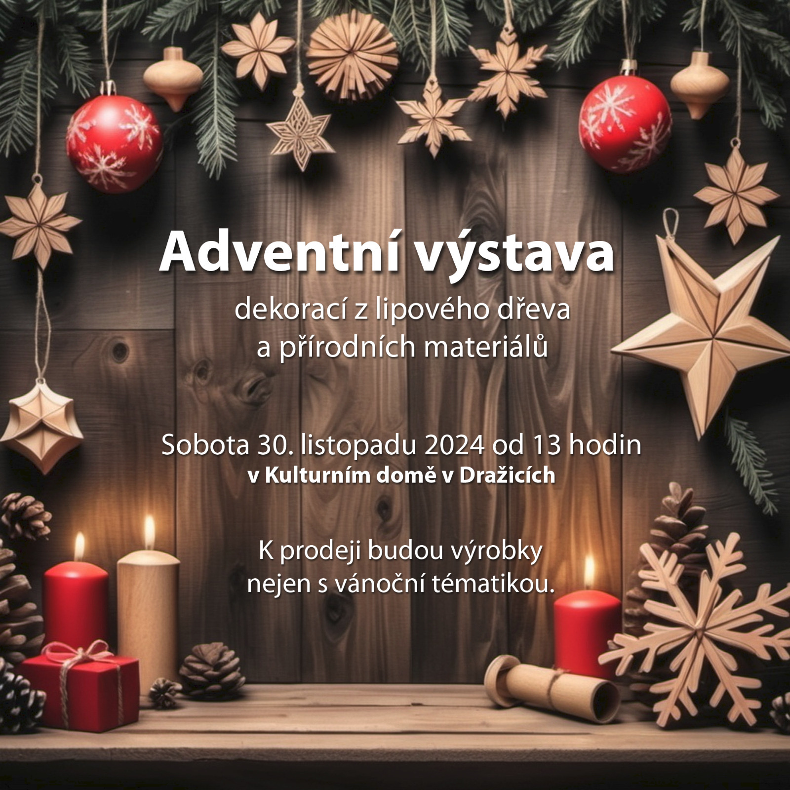dekorací z lipového dřeva a přírodních materiálů. KD Dražice 30.11.2024 od 13:00. Bližší informace naleznete v příloze.
