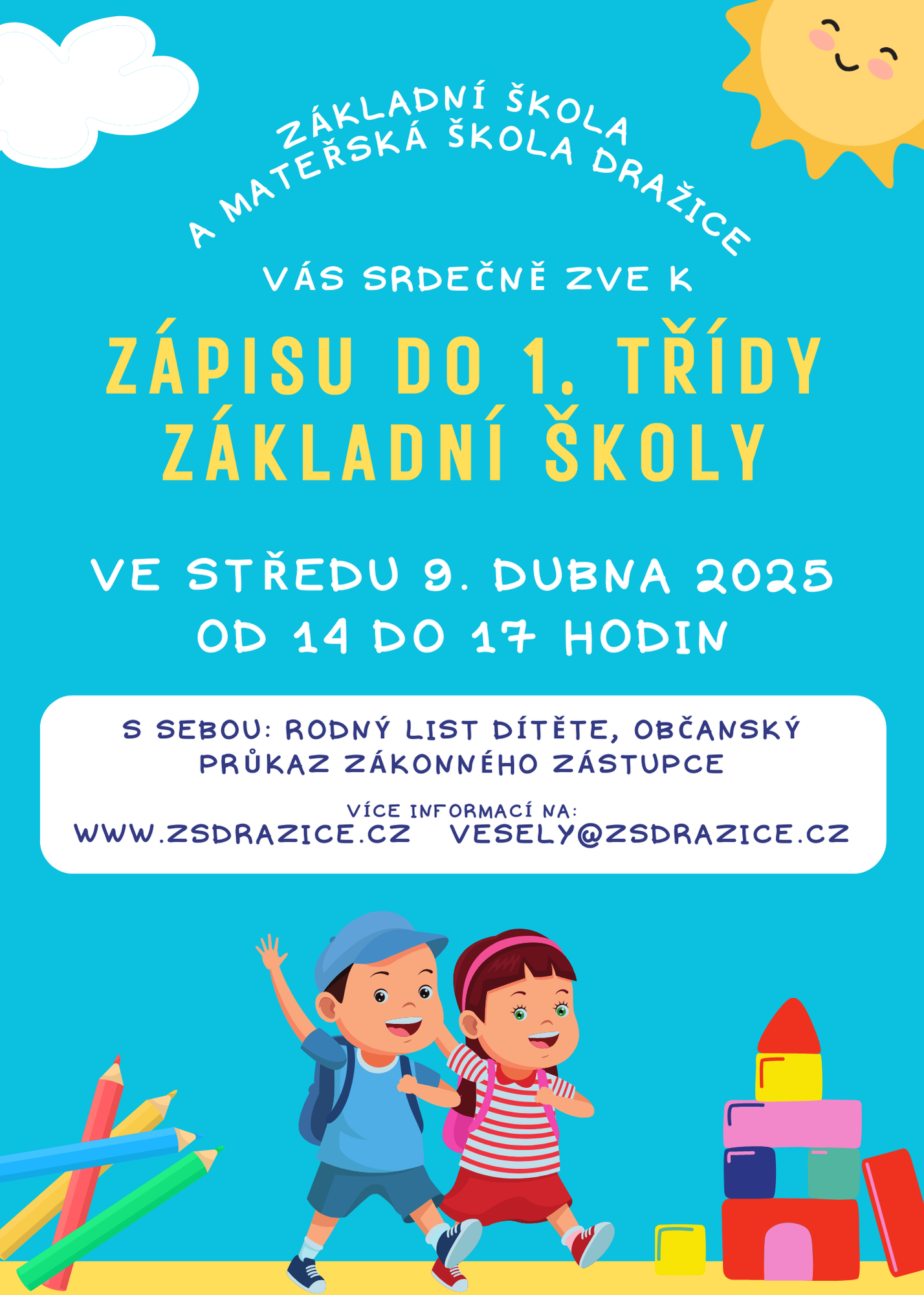 pro všechny - ZŠ Dražice v pátek 11.4.2025 od 16:00 do 18:00.