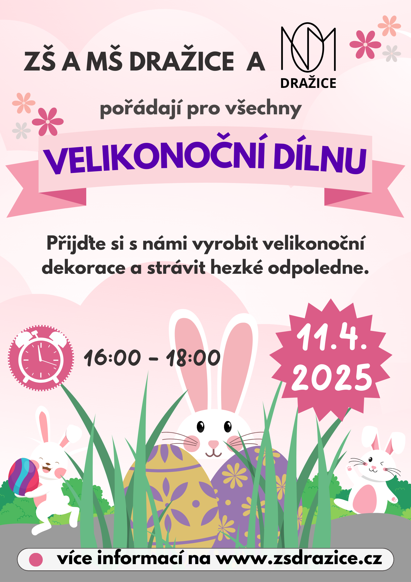 pro všechny - ZŠ Dražice v pátek 11.4.2025 od 16:00 do 18:00.