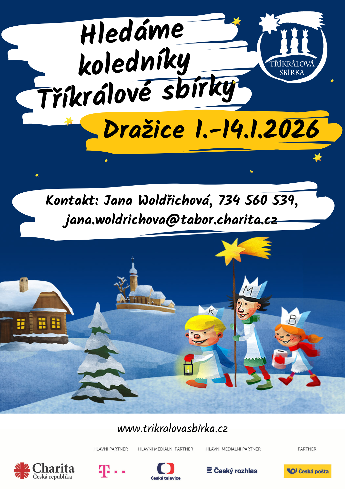 Charita Tábor hledá dobrovolníky-koledníky na Tříkrálovou sbírku 1.-14.1.2026