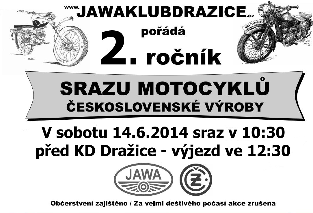 Tento klub sdružuje milovníky motocyklů československé výroby. Za období vzniku klubu lze považovat rok 2009, kdy první tři nadšenci podniklI vyjížďku dlouhou cca 100 km na strojích jawa 21. Každý rok se pak přidávali další nadšenci a počet vyjížděk vzrost. V červnu roku 2013 klub uspořádal v Dražicích 1. ročník srazu motocyklů československé výroby s ukázkou strojů a projížďkou. Podrobnější informace o činnosti klubu zjistíte na www.jawaklubdrazice.cz.
